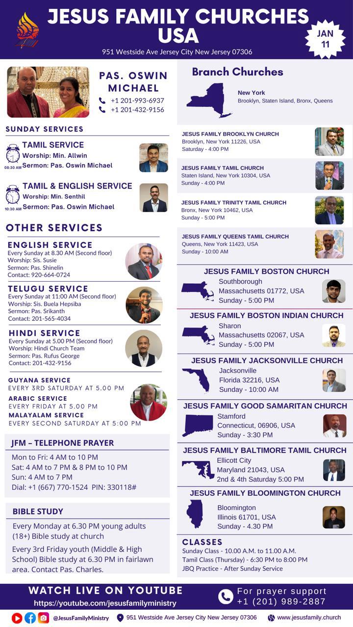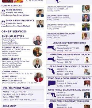 Jesus Family Ministry was founded in 2005 by Pastor Oswin Michael, driven by a heartfelt mission to reach those who have not yet encountered the gospel, with a strong focus on mission work. Since its founding, Jesus Family Ministry has established many churches worldwide and built schools to uplift underprivileged communities. Alongside our church network, we offer vital support to countless individuals, families, and churches. While our headquarters is based in Jersey City, NJ, our ministry extends across the United States and worldwide.